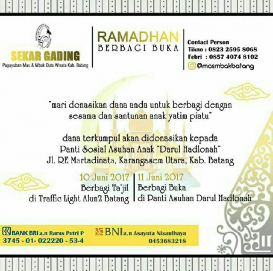 Pelaksana : Paguyuban Mas & Mbak Duta Wisata Kab. Batang